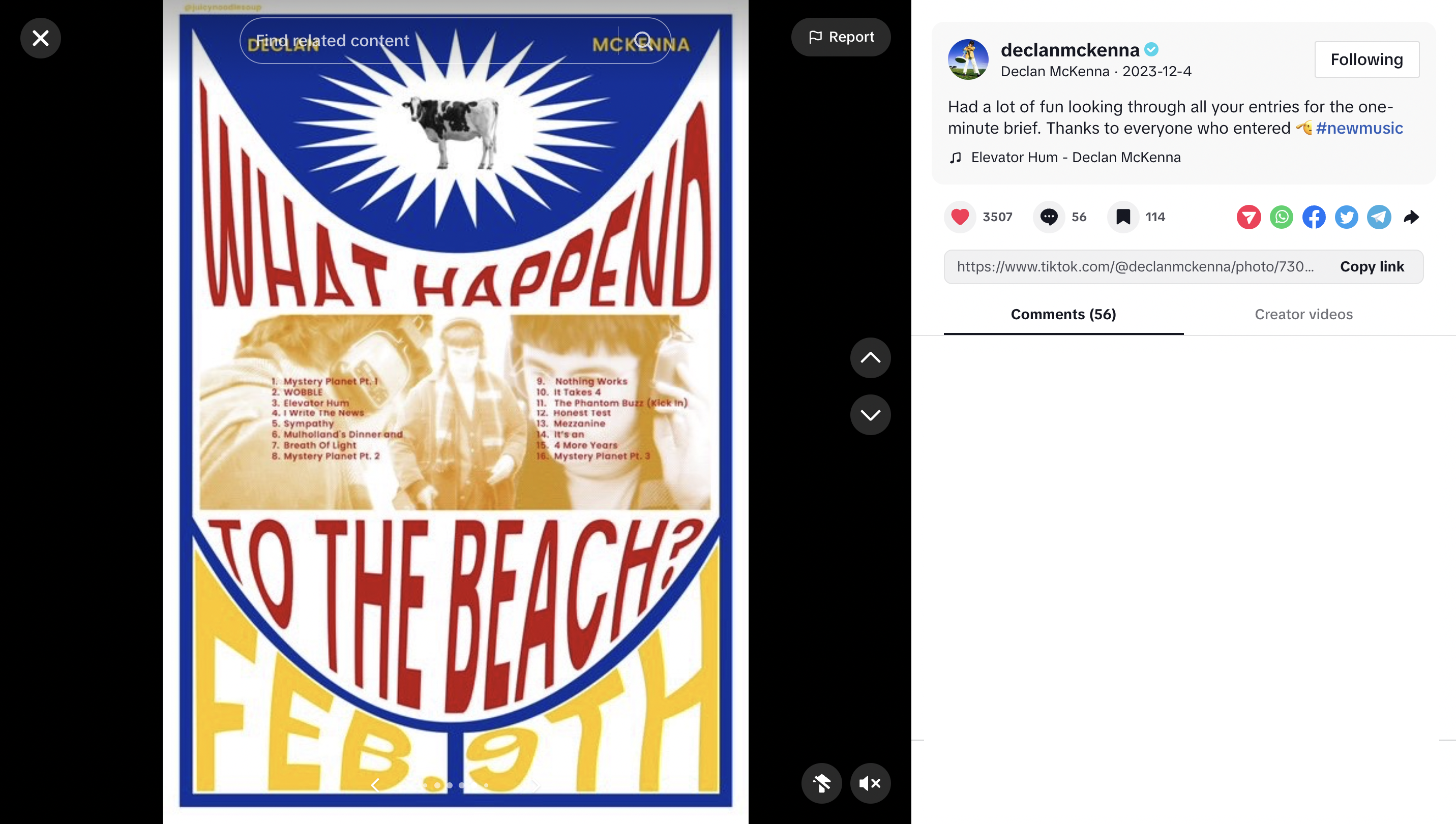 I did not end up winning the contest unfortunately, however, my poster did end up on Declan Mckenna’s tiktok page which I am very grateful for!
